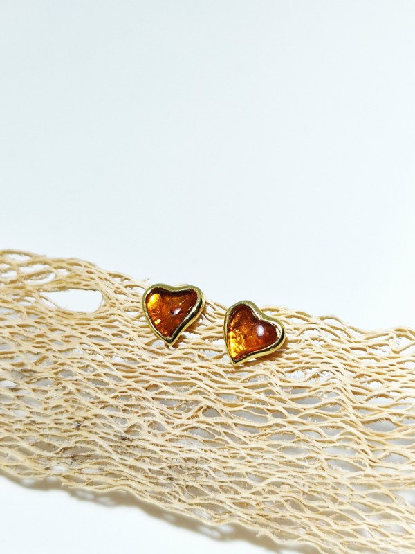 Cuoricini d’Ambra sono Orecchini in Argento dorato e Ambra naturale del Mar Baltico.