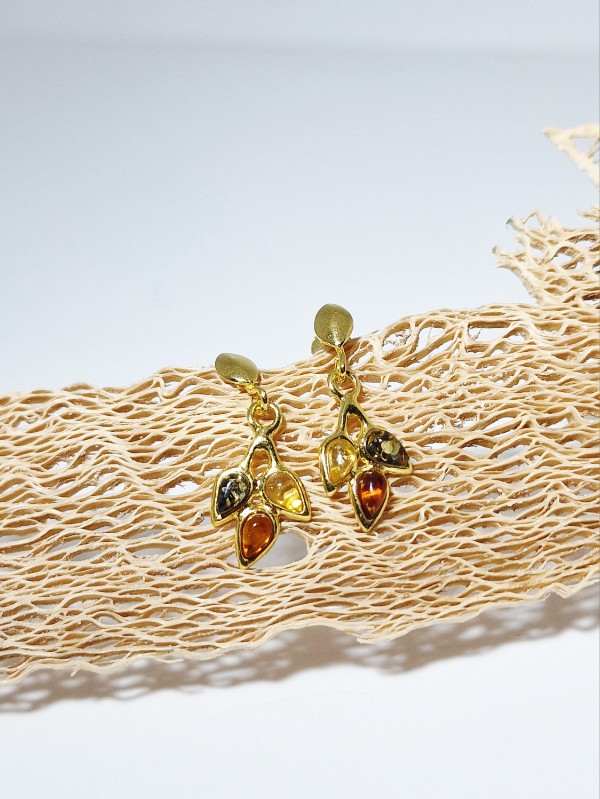 Grappolo d’Ambra sono orecchini in Argento 925 dorato e Ambra naturale del Baltico di 3 colori.