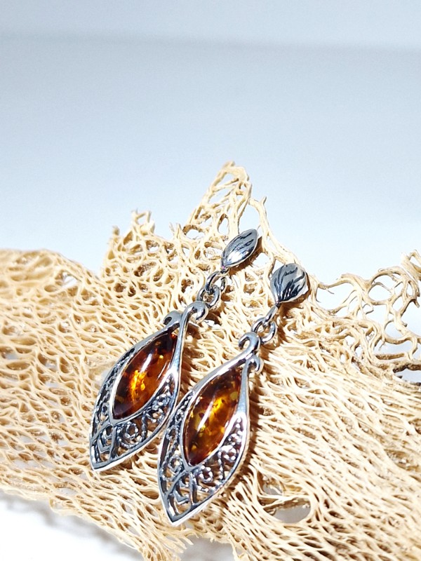 Ricamo d’Ambra sono Orecchini in Argento 925 e Ambra naturale del Baltico.